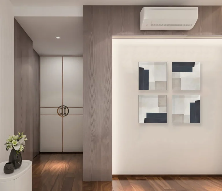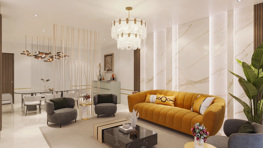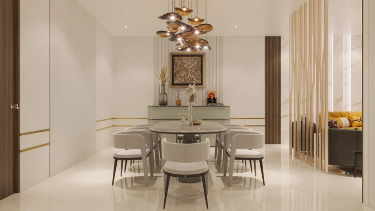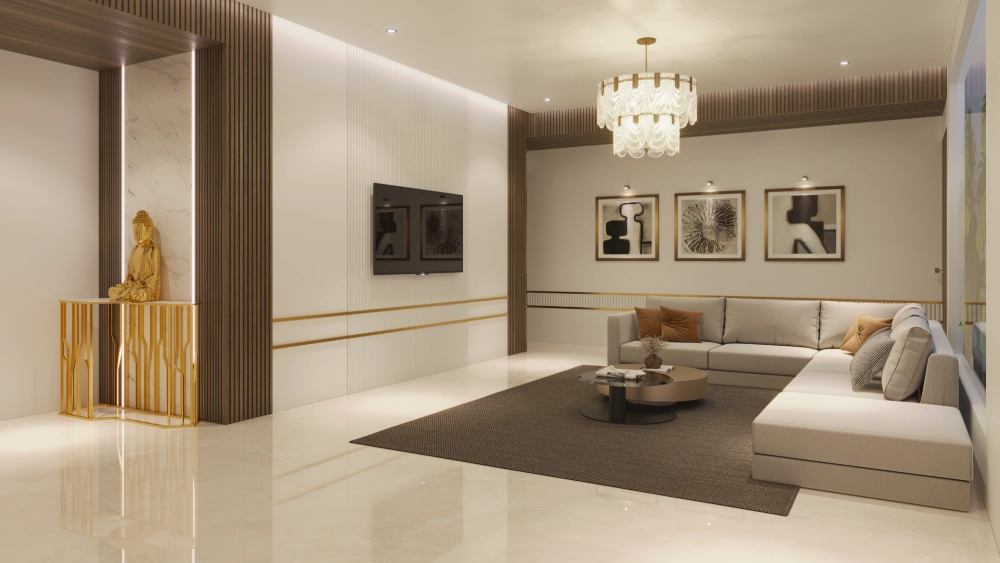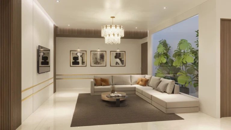 This contemporary home embodies the elegance of opals, with the primary color palette being soft and neutral. Featuring beige tones that create a serene and sophisticated ambience, the use of wooden textures adds an earthy warmth while gold accents woven strategically throughout the home, infuse opulence and refinement into the space without compromising its minimalist ethos. The live plants backdrop breaths life into the space, contributing to the organic, calming environment while maintaining spaciousness, tranquility, and an understated luxury.